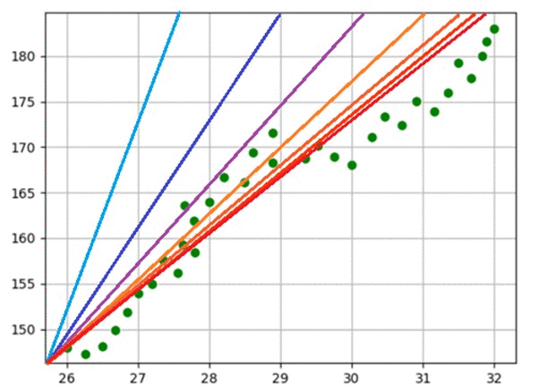 작은 폭으로 뛸 때, 합리적인 직선을 거의 찾았다고 생각하시면 됩니다.
