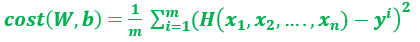 가설식에 바뀜에 따라 우리는 cost를 구하는 공식도 바뀌게 될 것입니다.