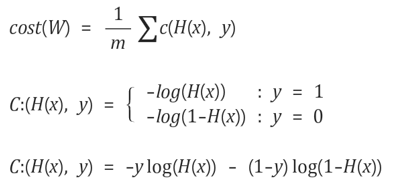 그래서 정확한 값을 찾기 어렵기 때문에, cost함수도 0과 1의 값을 나누어서 정의를 한 것입니다.